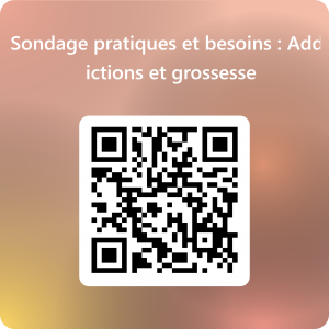 lundi 31 mars Enquête sur les addictions chez la femme enceinte Participez à notre enquête sur les addictions chez la femme enceinte ! Nous avons créé un sondage destiné aux professionnels de santé afin de mieux comprendre les pratiques, les besoins et les défis rencontrés dans la prise en charge des femmes enceintes confrontées à des addictions. Votre retour d’expérience est essentiel pour nous aider à élaborer un parcours de soins adapté et efficace. Pour accéder au questionnaire, scannez le QR code ou cliquez sur ce lien : https://forms.office.com/e/gWPEsakUVJ. Vos réponses resteront confidentielles, anonymes et seront utilisées uniquement dans le cadre de ce projet. Merci de votre participation et de votre engagement dans l’amélioration des soins !