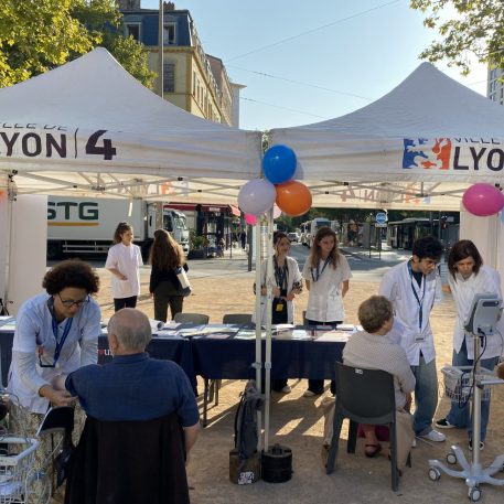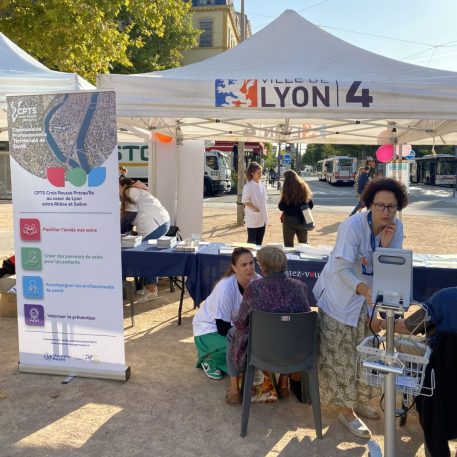 lundi 15 septembre 🔵 PrĂ©vention de l’hypertension artĂ©rielle – Faire du bruit pour une maladie silencieuse ! 🔵 Vendredi 12 septembre dernier, le laboratoire Eurofins et la Pharmacie des Lions, adhĂ©rents Ă la CPTS Croix-Rousse Presqu’Ă®le, se sont associĂ©s aux cĂ´tĂ©s des Ă©quipes des Hospices Civils de Lyon pour une journĂ©e de dĂ©pistage et d’information sur l’hypertension artĂ©rielle (HTA) sur la Place de la Croix-Rousse. âś… Plus de 200 personnes sont venues se faire dĂ©pister avec prise de tension. âś… Une action de prĂ©vention et de sensibilisation qui renforce le lien ville hĂ´pital et souligne l’importance d’un suivi rĂ©gulier en lien avec l’hĂ´pital et leur mĂ©decin traitant. 👉 L’objectif : Informer directement la population, Ă travers une matinĂ©e ouverte au grand public, pour dĂ©livrer des messages clairs sur la prĂ©vention cardiovasculaire et sur l’importance du dĂ©pistage et du traitement de l’HTA. 🙏 Merci Ă nos partenaires pour leur engagement : đź§Ş EUROFINS CBM 69 – Biologie MĂ©dicale – Brice Daragon et đź’Š la Pharmacie des Lions 🏥 Hospices Civils de Lyon – HCL – HĂ´pital de la Croix-Rousse 🏛️ Ville de Lyon – La Mairie du 4ème arrondissement de Lyon 📢 Ensemble, continuons Ă faire du bruit pour cette maladie silencieuse !